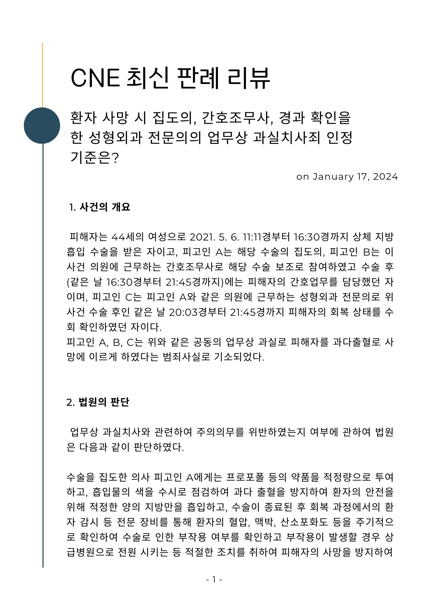 [최신 판례 리뷰] 업무상 과실치사 사건 공동정범 인정 기준은?