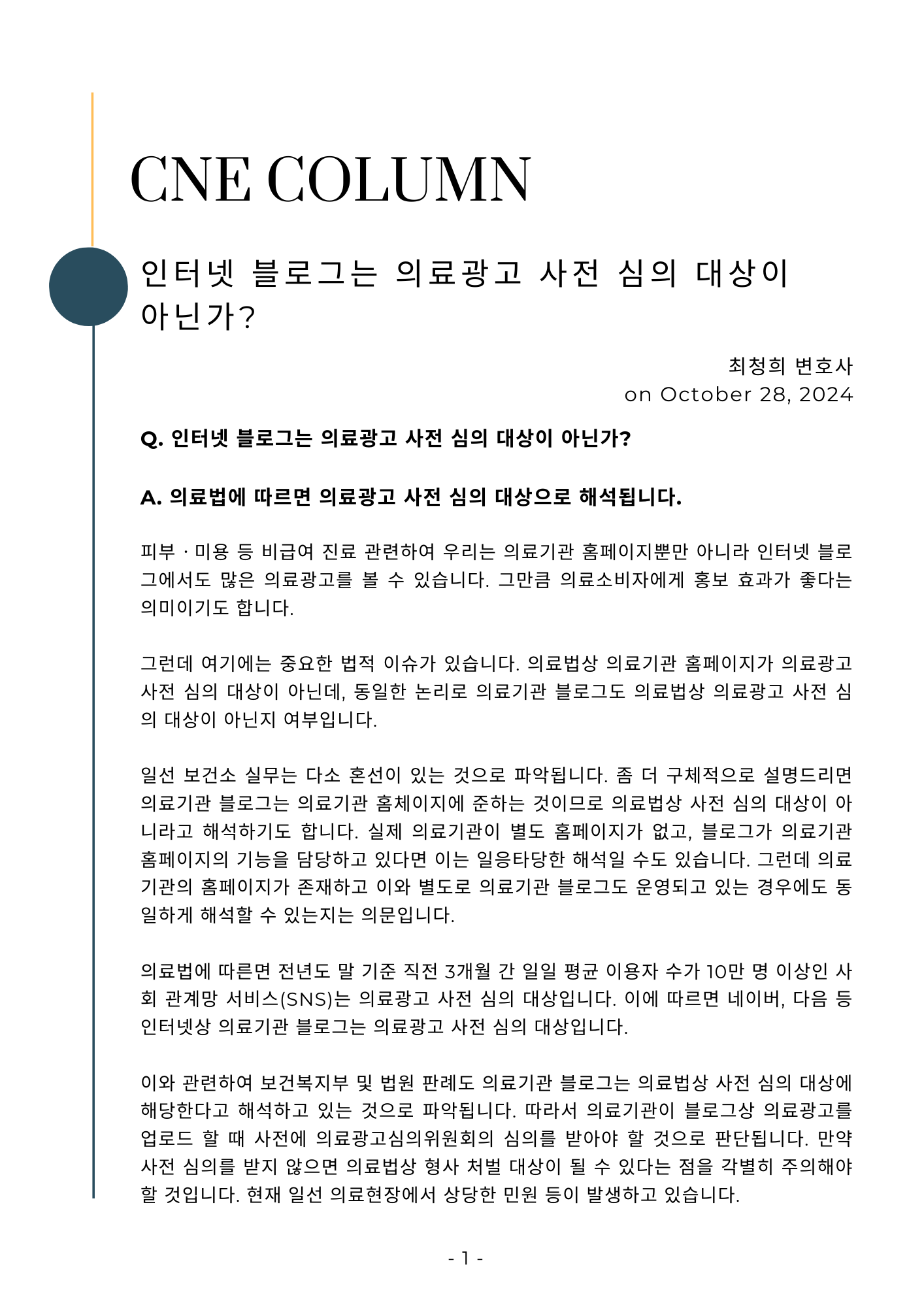 [칼럼] 인터넷 블로그는 의료광고 사전 심의 대상이 아닌가