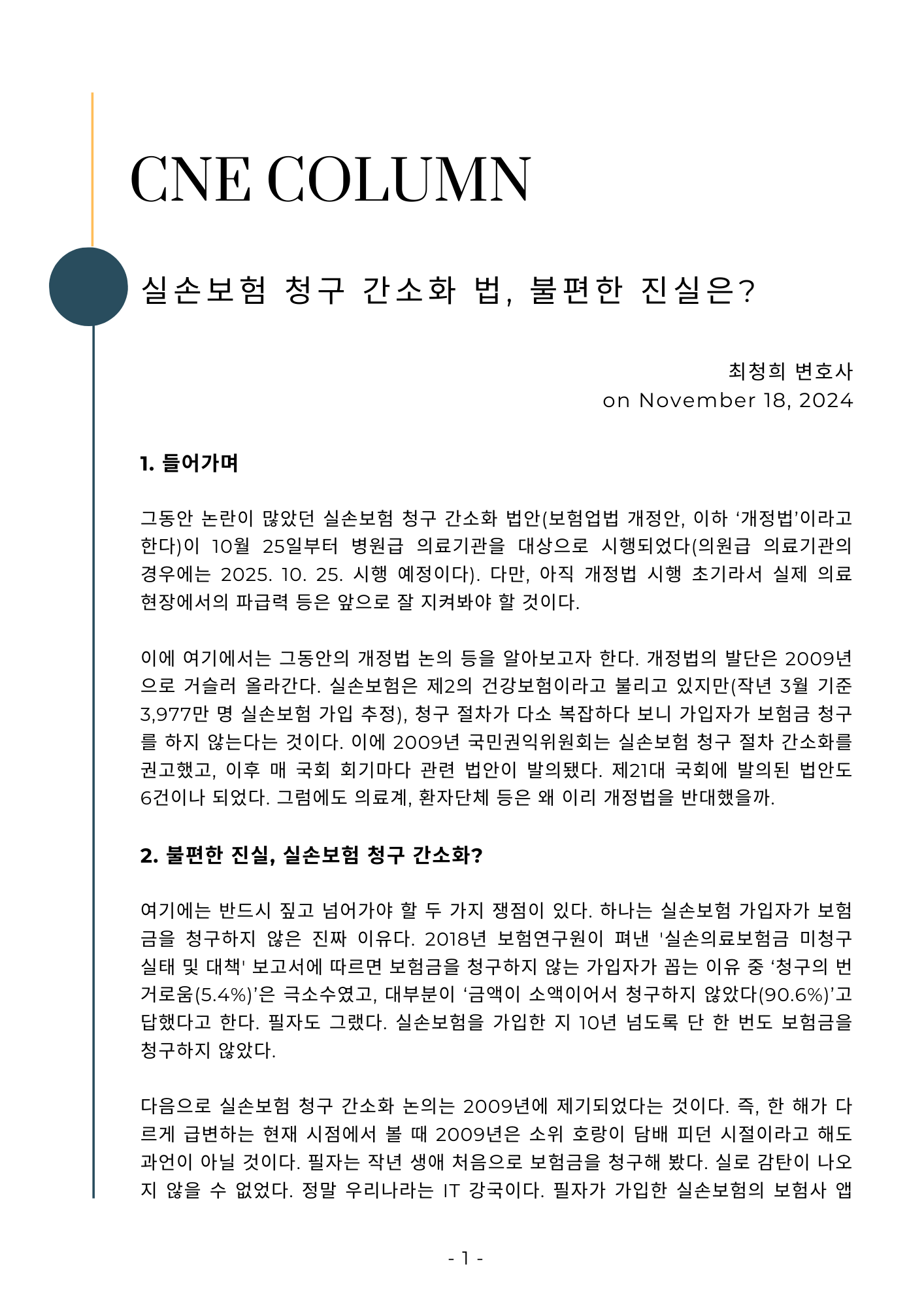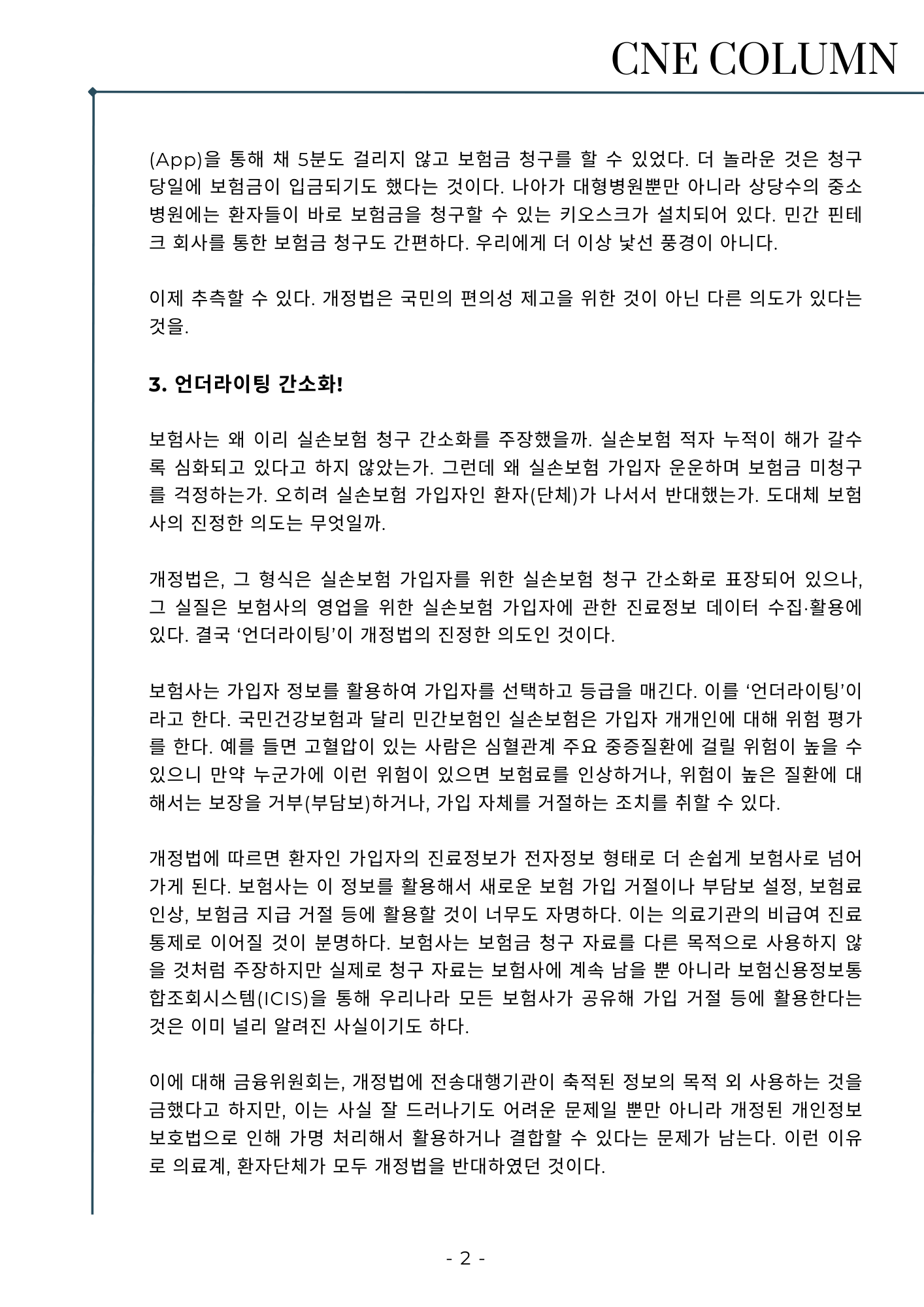 [칼럼] 실손보험 청구 간소화 법, 불편한 진실은?