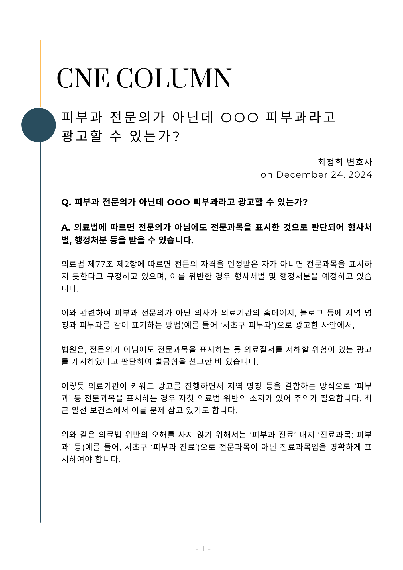 [칼럼] 피부과 전문의가 아닌데 OOO 피부과라고 광고할 수 있는가