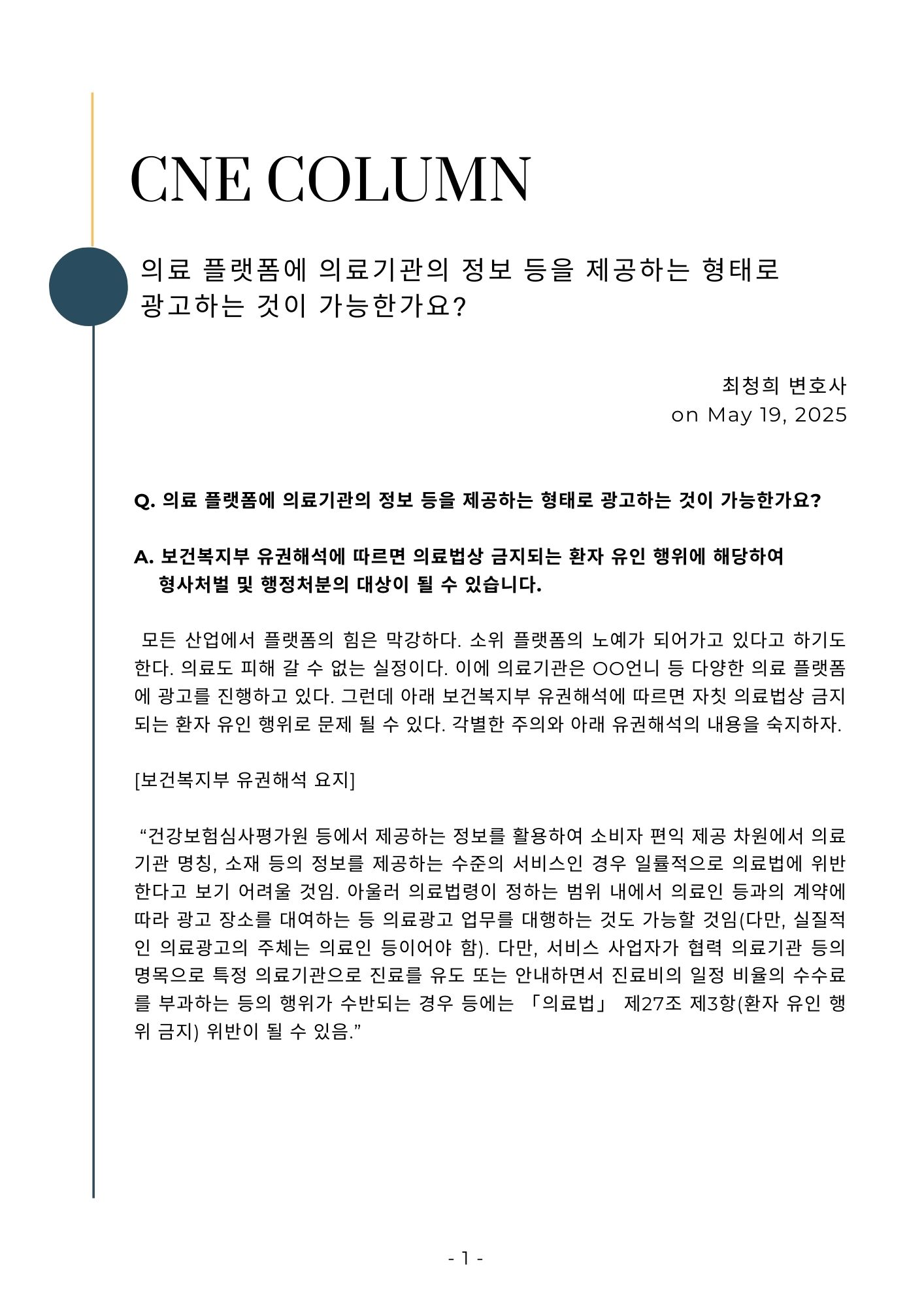 [칼럼] 의료 플랫폼에 의료기관의 정보 등을 제공하는 형태로 광고하는 것이 가능한가