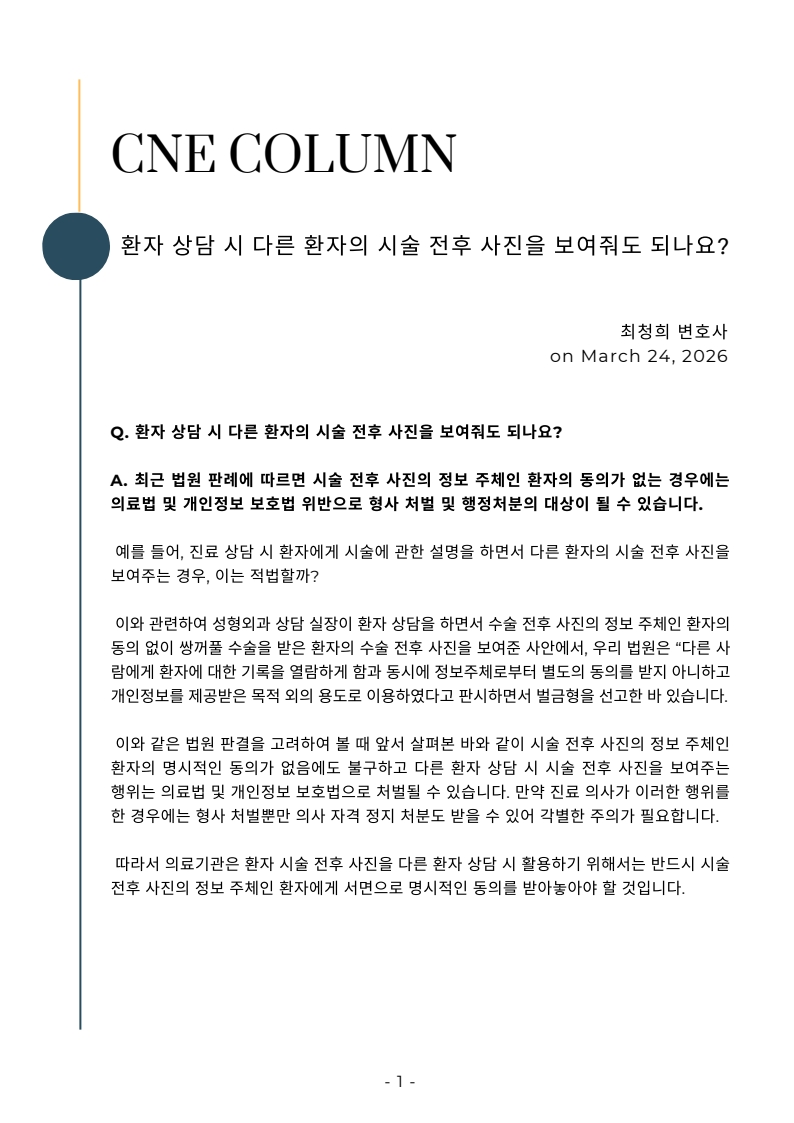 [칼럼] 환자 상담 시 다른 환자의 시술 전후 사진을 보여줘도 되는가